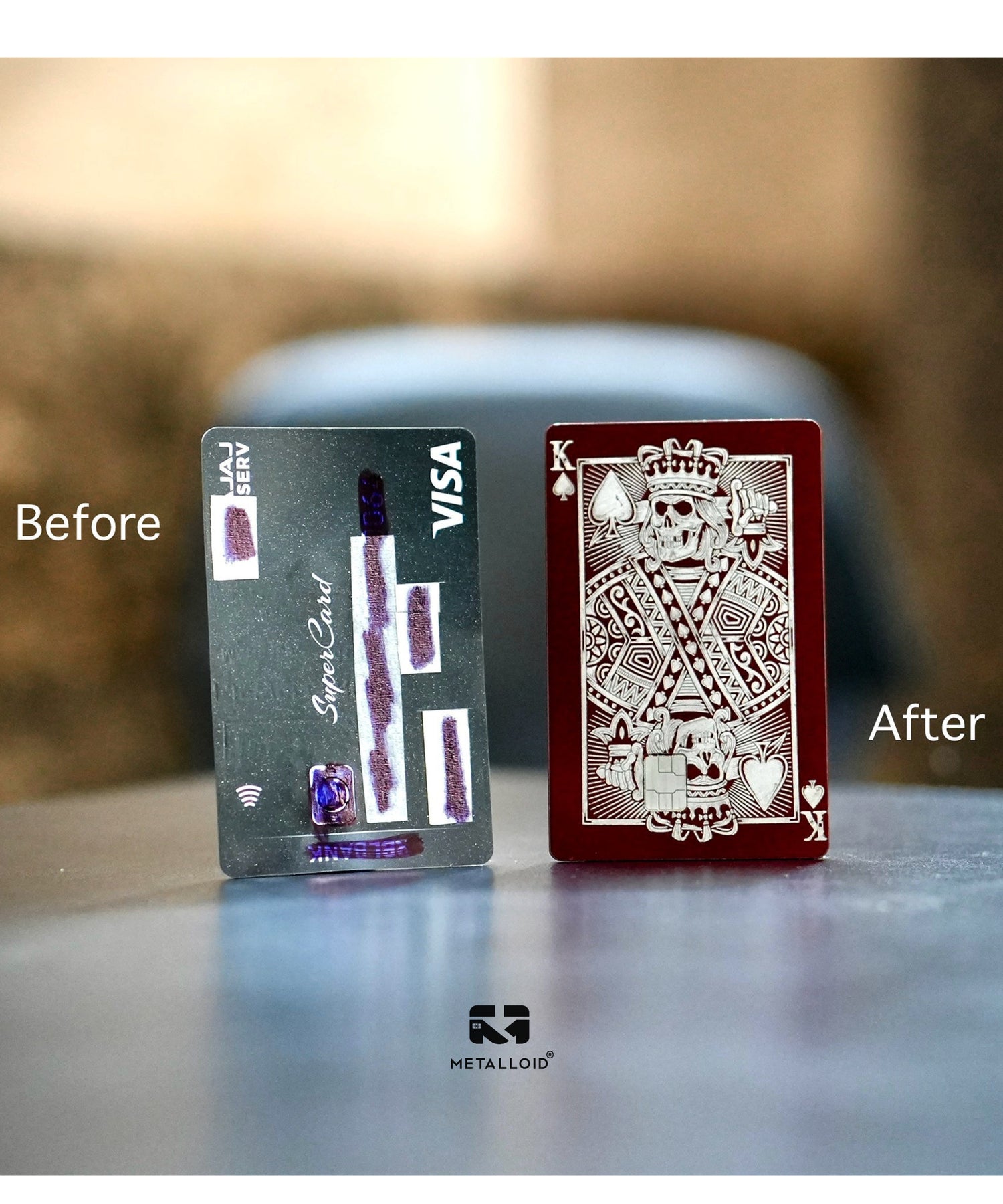 Metalloid card is a registered company under the Government of India, based in Jaipur. We specialize in transforming ordinary plastic ATM cards into fully customized metal cards with unlimited personalization options. Our cards are exclusively made of metal and intricately laser engraved, ensuring durability and uniqueness. Unlike others, we never compromise on quality by using cheap plastic skins.
