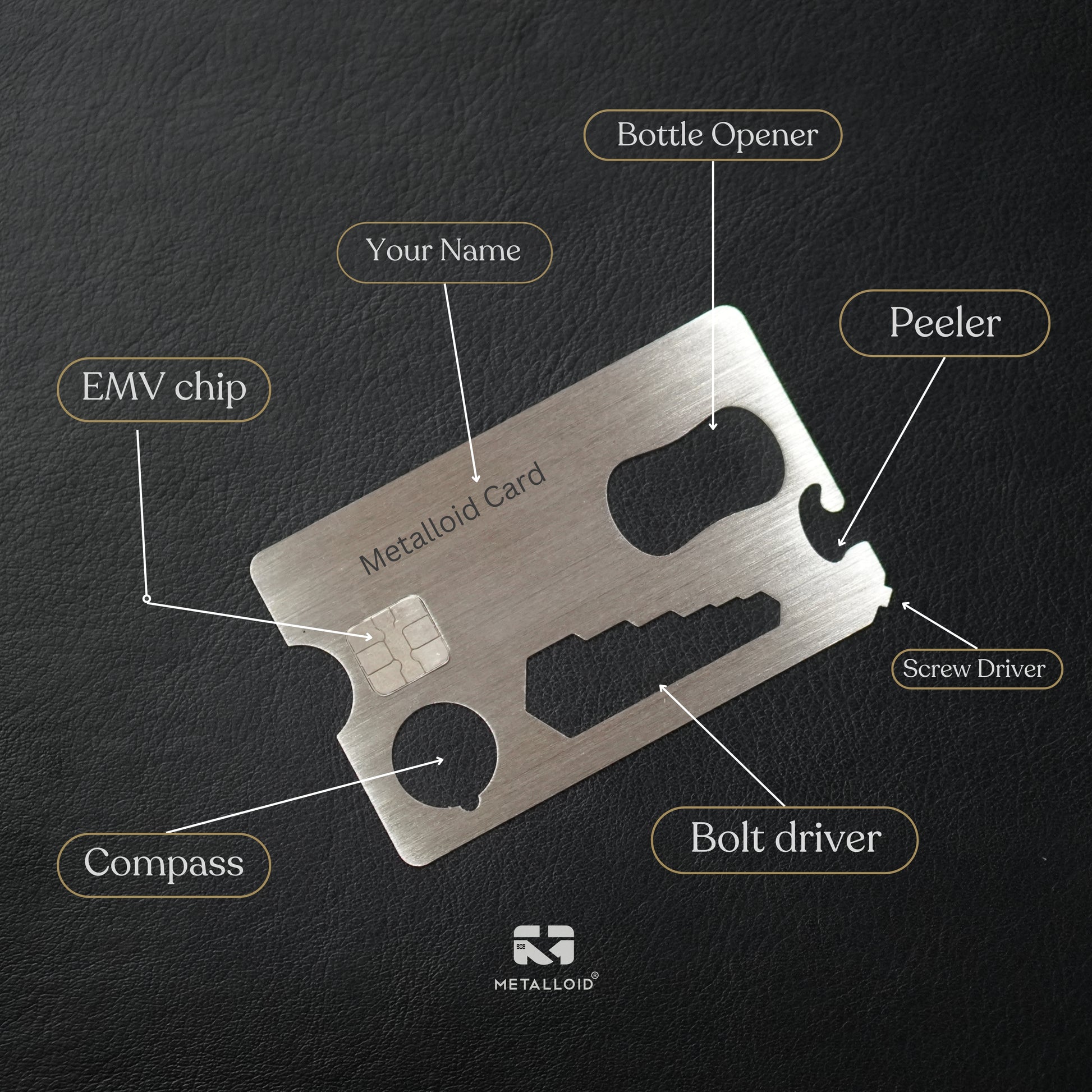 - Metalloid Card is NOT a credit card service company. We do NOT offer credit, reward programs or points. We ONLY transform your plastic debit/credit cards by engraving your personal design onto your choice of metal card.